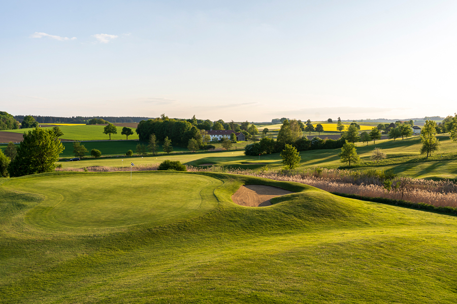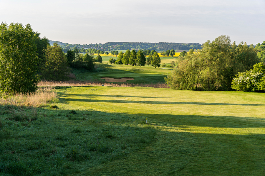 The layout and playability of the Golf Club Tegernbach are superb. The fairways are very varied and exciting, but never unfair. The landing zones of the fairways are quite wide, but the greens are all very well protected by bunkers and ditches that cross the fairway in front of the green. The gentle elevation changes on the fairways are particularly appealing. Sometimes you hit your drive onto a plateau from where you can make a fabulous shot onto the lower green. The big highlight is the 9th and 18th with their greens directly in front of the clubhouse with a view towards Tegernbach. These are possibly the signature fairways of the Golf Club Tegernbach. However, there are many fairways that actually remain in your memory.